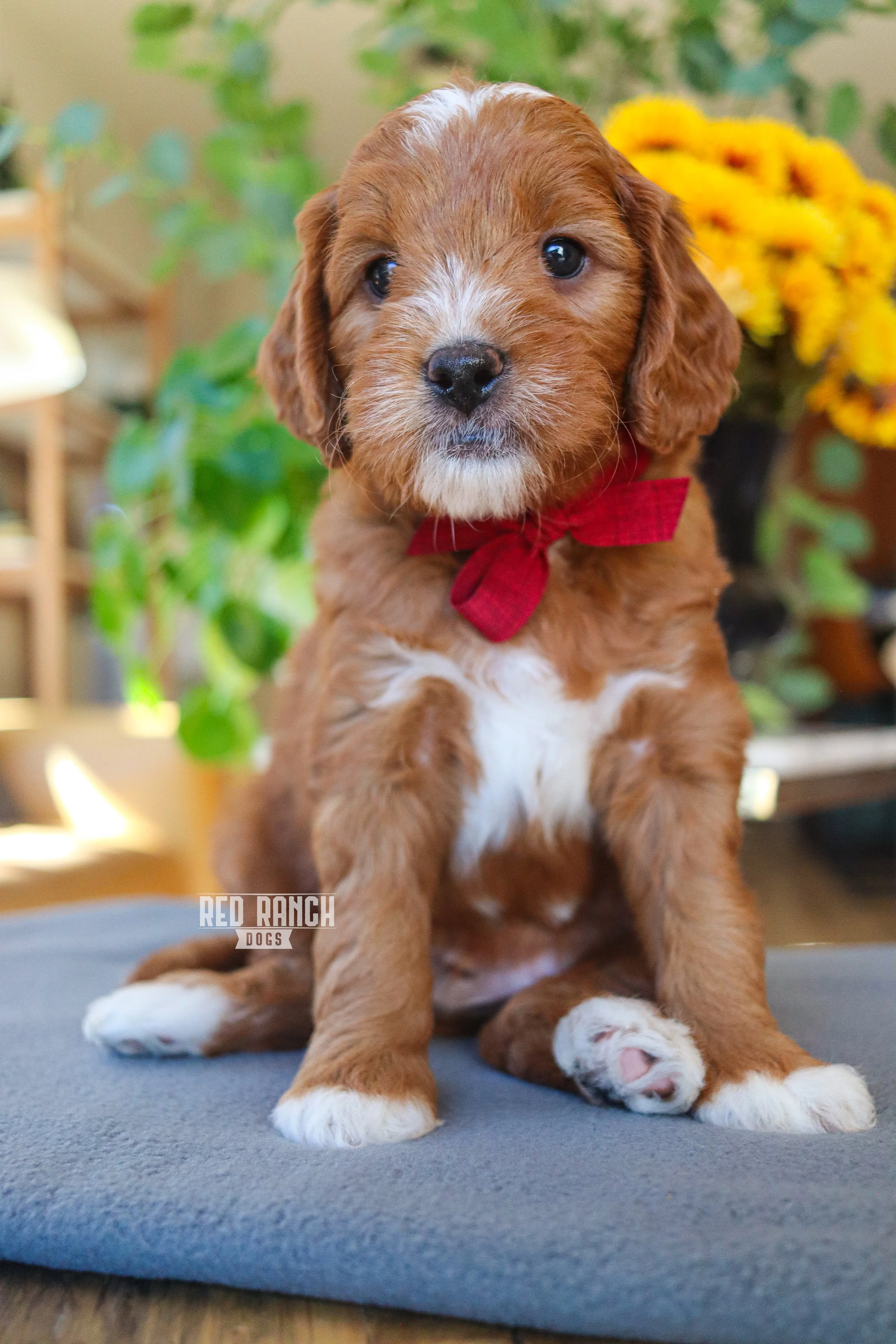 Georgia is a beautiful red F1 Goldendoodle weighing about 20 pounds, with a soft wavy coat and a sweet, loving temperament. Waylon is a Multi-Gen Goldendoodle weighing 20 pounds, admired for his silky coat, balanced genetics, and gentle personality.